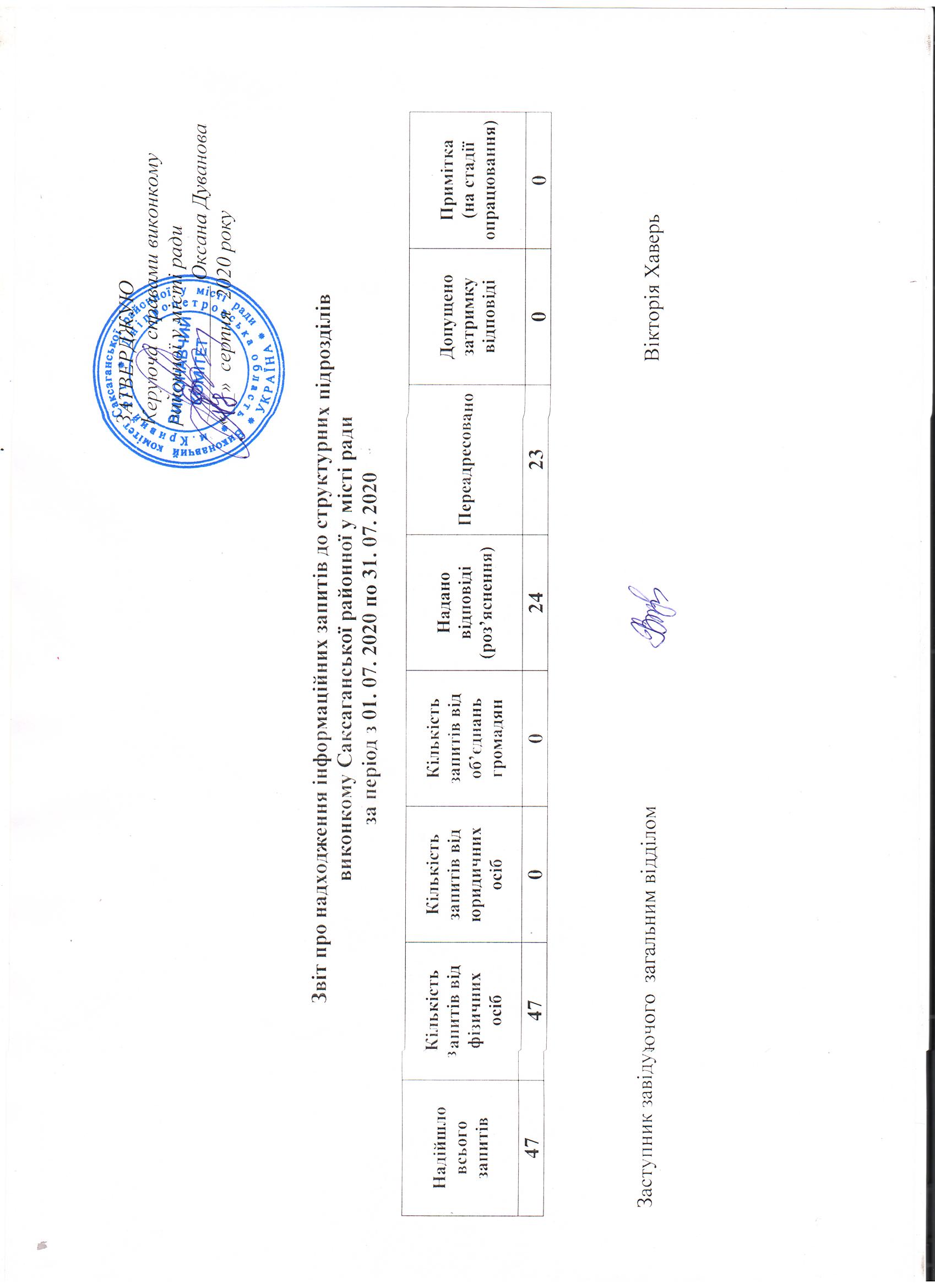 Звіт про надходження інформаційних запитів до виконкому Саксаганської районної у місті ради за липень 2023 року