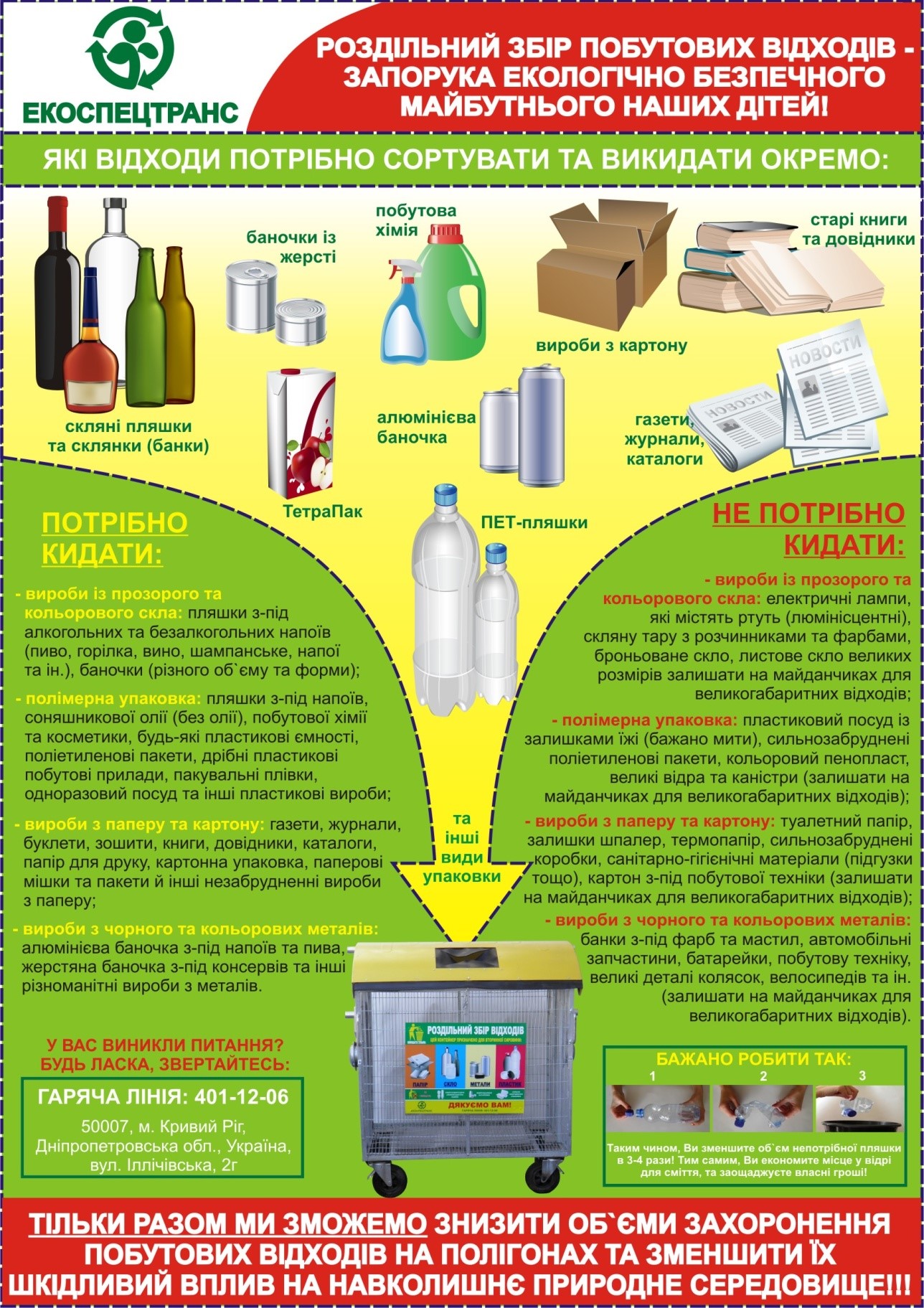 На сегодняшний день данная программа носит характер эксперимента, целью которого является выявить готовность и способность жителей нашего города осуществлять сортировку отходов.При соблюдении жителями принципов ведения раздельного сбора, мы сами проведем глубокую сортировку сухого мусора и отправим его на дальнейшую переработку на соответствующие предприятия Украины.