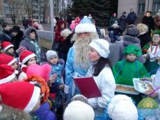 Біля будівлі виконкому Саксаганської районної у місті ради відбулося святкове відкриття головної ялинки Саксаганського району та ялинкового містечка під назвою “Ласкаво просимо на Зимову забаву”