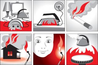 У житлових і громадських будівлях пожежа в основному виникає через несправність електромережі та електроприладів, витоку газу, загоряння електроприладів, залишених під напругою без нагляду, необережного поводження і пустощів дітей з вогнем, недбалості дорослих, паління, використання несправних електроприладів.