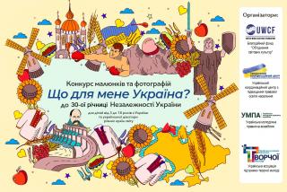 З метою культурно-освітнього розвитку, формування у дітей і підлітків національної ідентичності, патріотичного виховання; соціальної підтримки талановитої молоді, сприяння їх самореалізації та творчому розвитку, активного залучення творчої молоді до соціально-вагомої діяльності, Благодійний фонд «Об’єднання світових культур», Український координаційний центр з підвищення правової освіти населення, Українська молодіжна правнича асамблея, Українська асоціація підтримки творчої молоді проводять Всеукраїнський конкурс малюнків та фотографій «Що для мене Україна?», приурочений до 30-ї річниці Незалежності України.