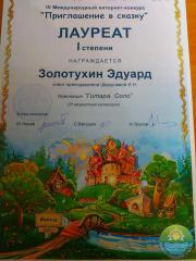 Відділ культури виконкому районної у місті ради вітає відділ народних інструментів, і зокрема гітариста КЗСМО «Музична школа №3» КМР .