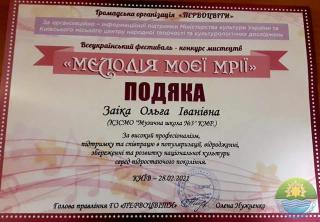 Відділ культури виконкому Саксаганської районної у місті ради щиро вітає учня КЗСМО «Музична школа №3» КМР Данила Галяцького з перемогою у Всеукраїнському фестивалі-конкурсі мистецтв «МЕЛОДІЯ МОЄЇ МРІЇ».
