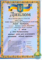 Відділ культури виконкому Саксаганської районної у місті ради вітає учнів та викладачів КЗСМО «Школа мистецтв №1» КМР з перемогою у ХХV Регіональному конкурсі (дистанційно) «Юний скрипаль».