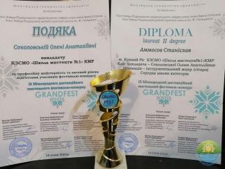 19 січня 2021 року відбувся IX Міжнародний дистанційний мистецький фестиваль-конкурс «GRANDFEST WINTER». Взяв участь та отримав перемогу учень відділу народних інструментів Комунального закладу спеціалізованої мистецької освіти «Школа мистецтв №1» Криворізької міської ради, Станіслав Аммосов (гітара) - лауреат ІІ премії (середня категорія), викладач Олена Соколовська.