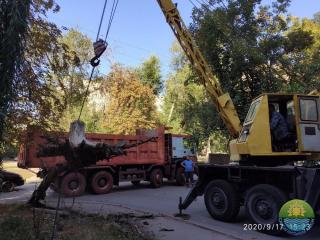17.09.2020 управлінням благоустрою та житлово–комунального господарства разом з відділом економіки та промисловості виконкому Саксаганської районної у місті ради було продовжено ліквідацію коренів повалених дерев на мікрорайоні Ювілейному та вулиці Співдружності з залученням автомобільної, вантажопідйомної техніки та робітників підприємств району, таких як: КП «Кривбасводоканал», КП «Сансервіс» КМР, ТОВ «Метінвест-КРМЗ», ПАТ «Рудомайн» та ТОВ «ЖИТЛОСЕРВІС-КР».