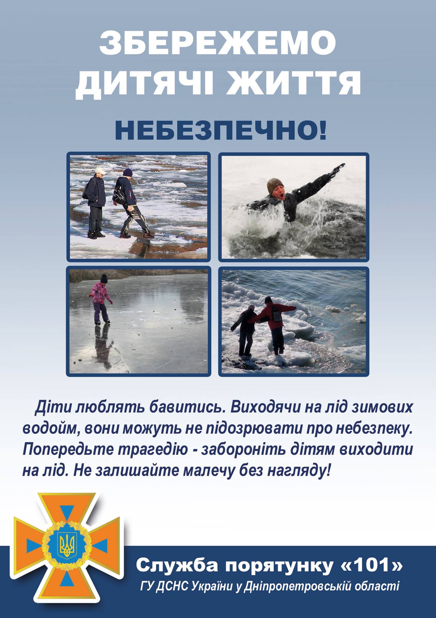 Особливо звертаємо увагу батьків: попередьте дітей про небезпеку, яку таїть в собі крига водойм, не дозволяйте гратися біля водоймищ без догляду дорослих.