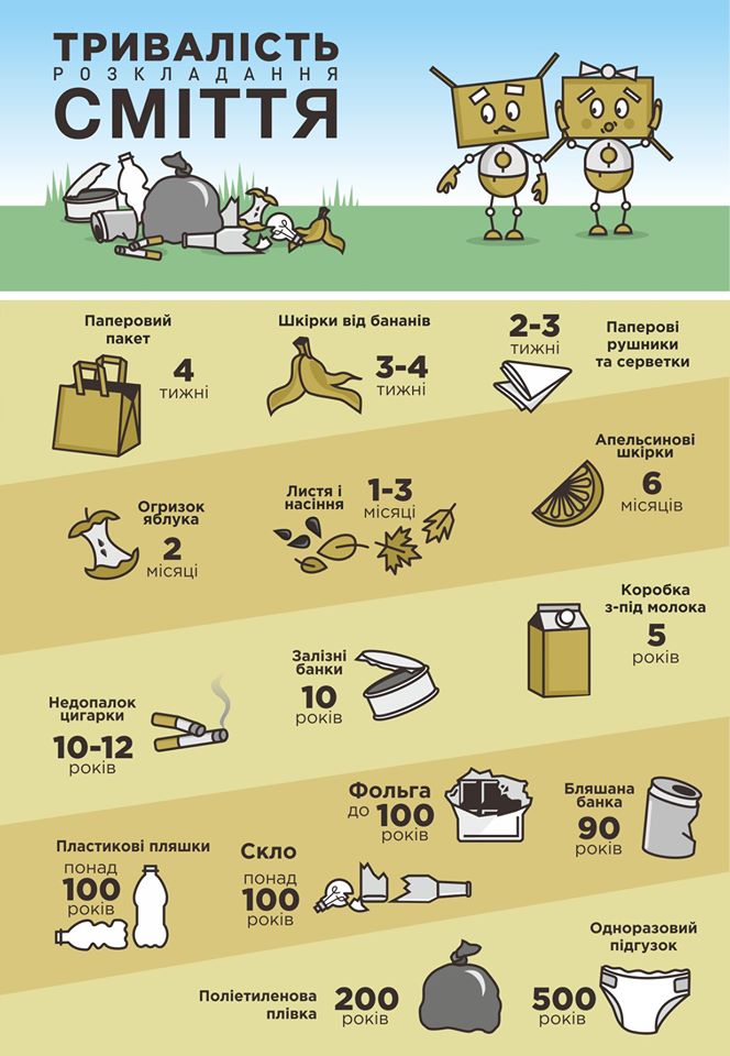 За інформацією сайта «Великая Эпоха» (https://www.epochtimes.com.ua/ru/novosti-nauki-i-tehniki/infografika-skolko-vremeni-nuzhno-chtoby-othody-razlozhilis-121905 )