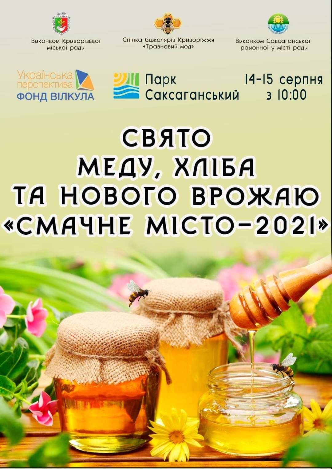 Шановні мешканці та гості нашого міста, запрошуємо вас на чудове свято меду, хліба та нового врожаю «Смачне місто-2021», яке відбудеться 14, 15 серпня 2021 року у парку Саксаганському. Початок свята о 10.00 годині. Зокрема ярмарку-продажу та дегустацій для вас, шановні друзі, готується насичена розважальна програма з конкурсами, призами та яскравими концертними номерами. Родзинкою свята для шановних глядачів – виступ гостей з Кіровоградщини, володарів численних Гран-Прі конкурсів та фестивалів, знаковий етно-гурт, який не залишить байдужим нікого – народний фольклорний ансамбль «Ексампейя»!