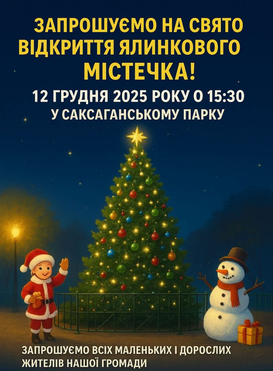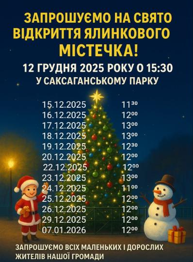 12 грудня 2025 року о 15.30 у парку Саксаганському відбудеться відкриття Ялинкового містечка.