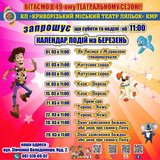 Щороку наприкінці березня культурна спільнота світу відзначає особливі мистецькі свята: Міжнародний день театру та Міжнародний день лялькаря. Це дні, коли ми вшановуємо людей, які дарують глядачам справжнє диво, диво сцени, створюють емоції, змушують сміятися, замислюватися і вірити в казку.