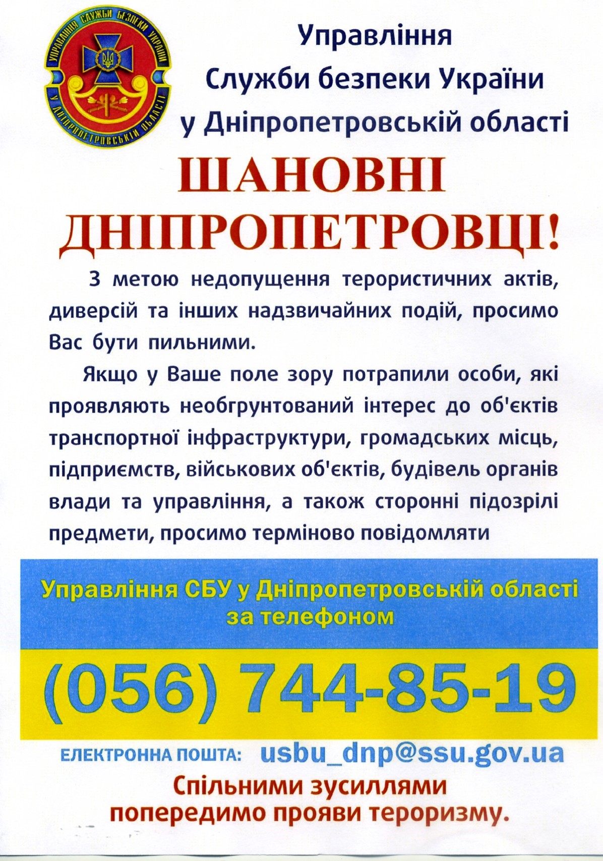 Пам`ятки СБУ щодо недопущення терористичних загроз