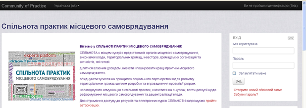 Важливо, що доступ до електронних курсів і ресурсів Спільноти практик без авторизації (ідентифікації користувача системою) неможливий.