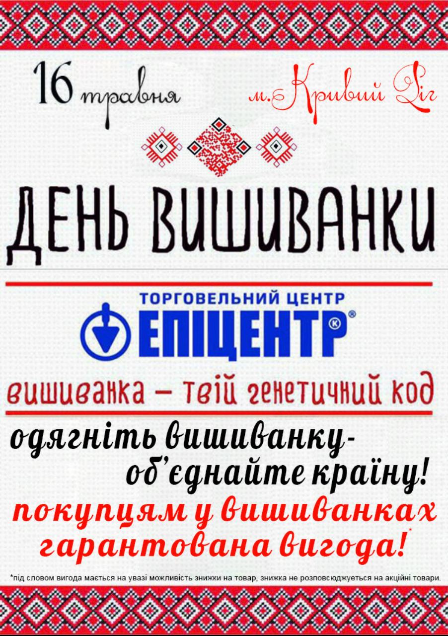 В Саксаганському районі теж будуть проходи різноманітні акції, так до неї долучився і гіпермаркет «Епіцентр -КР», а саме акція «Вишиванка – твій генетичний код».