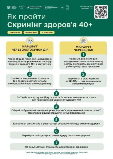 Інструкція як пройти Скринінг здоров’я 40+. Перелік закладів охорони здоров’я, які проводять Скринінг здоров’я 40+.