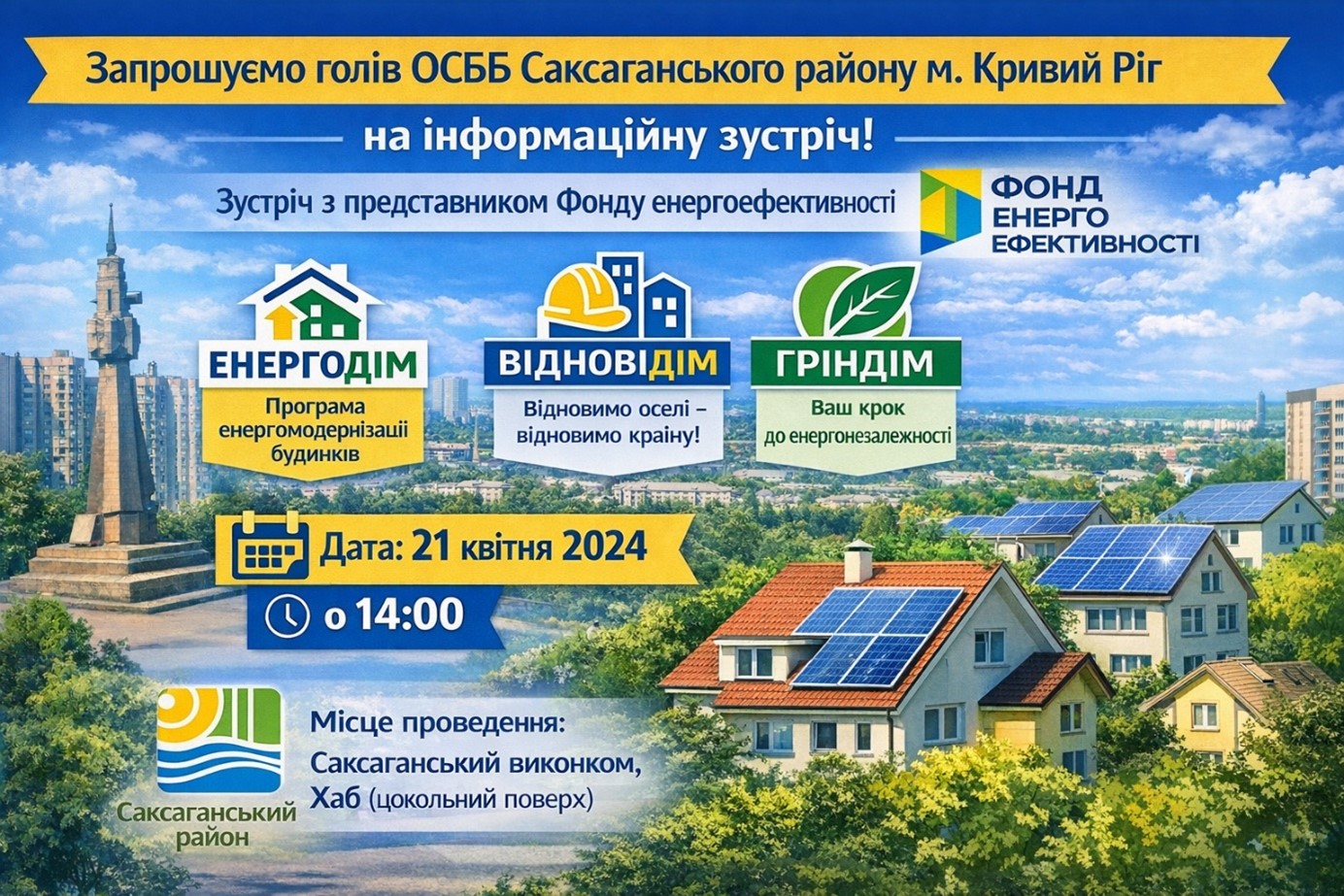 Запрошуємо голів ОСББ та ЖБК Саксаганського району!