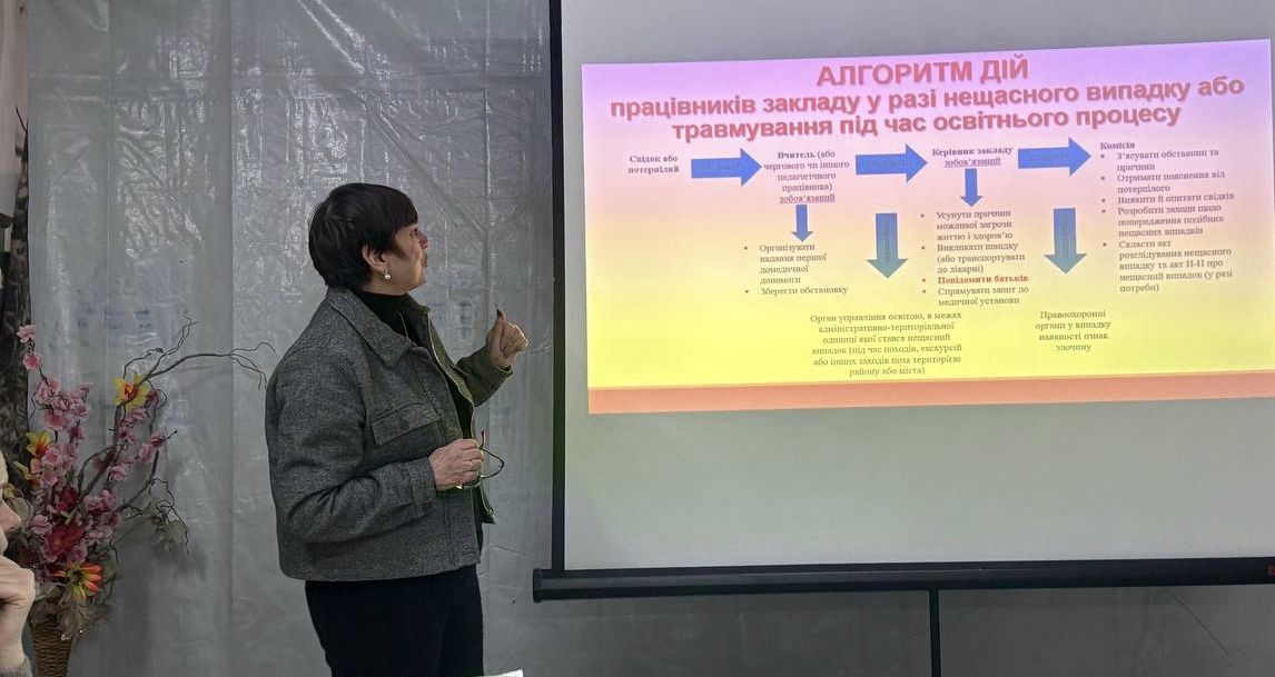 Здійснено ретельний аналіз випадків травмування під час освітнього процесу та в побуті серед здобувачів і працівників закладів освіти за 2025 рік. Наголосили на питаннях організації та проведення інформаційно-роз’яснювальної роботи серед працівників та здобувачів освіти щодо запобігання нещасним випадкам, дотриманні алгоритму дій при травмуванні під час освітнього процесу.