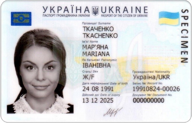 Паспорт нового зразка виготовляється у формі пластикової картки, виготовленої з багатошарового полімерного матеріалу (полікарбонату). Розмір картки становить 54 х 85,6 міліметра, що відповідає формату ID-1.
