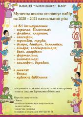 Криворізька міська музична школа № 3 оголошує набір учнів на 2020-2021 навчальний рік.