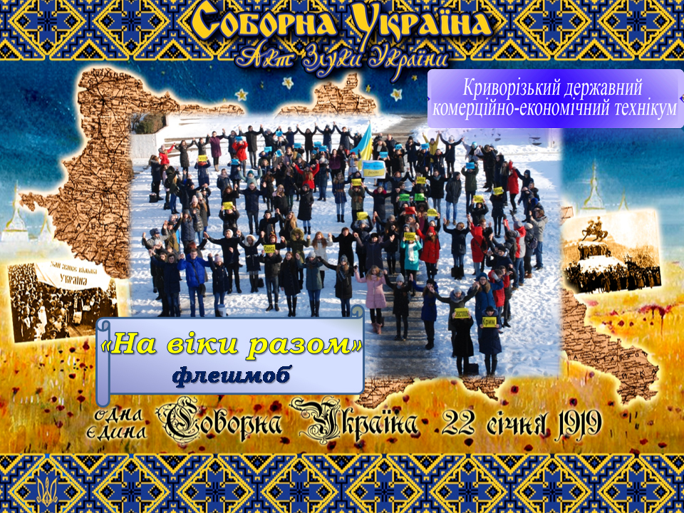 17 січня 2019 року напередодні знаменної події для нашого народу - сторіччя Злуки УНР та ЗУНР, вшановуючи пам'ять українських борців за єдину соборну, незалежну державу, що була проголошена 22 січня 1919 року, студенти Криворізького державного комерційно-економічного технікуму розпочали флешмоб на захист ідеї соборної демократичної України.