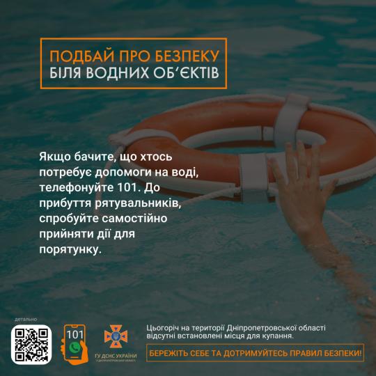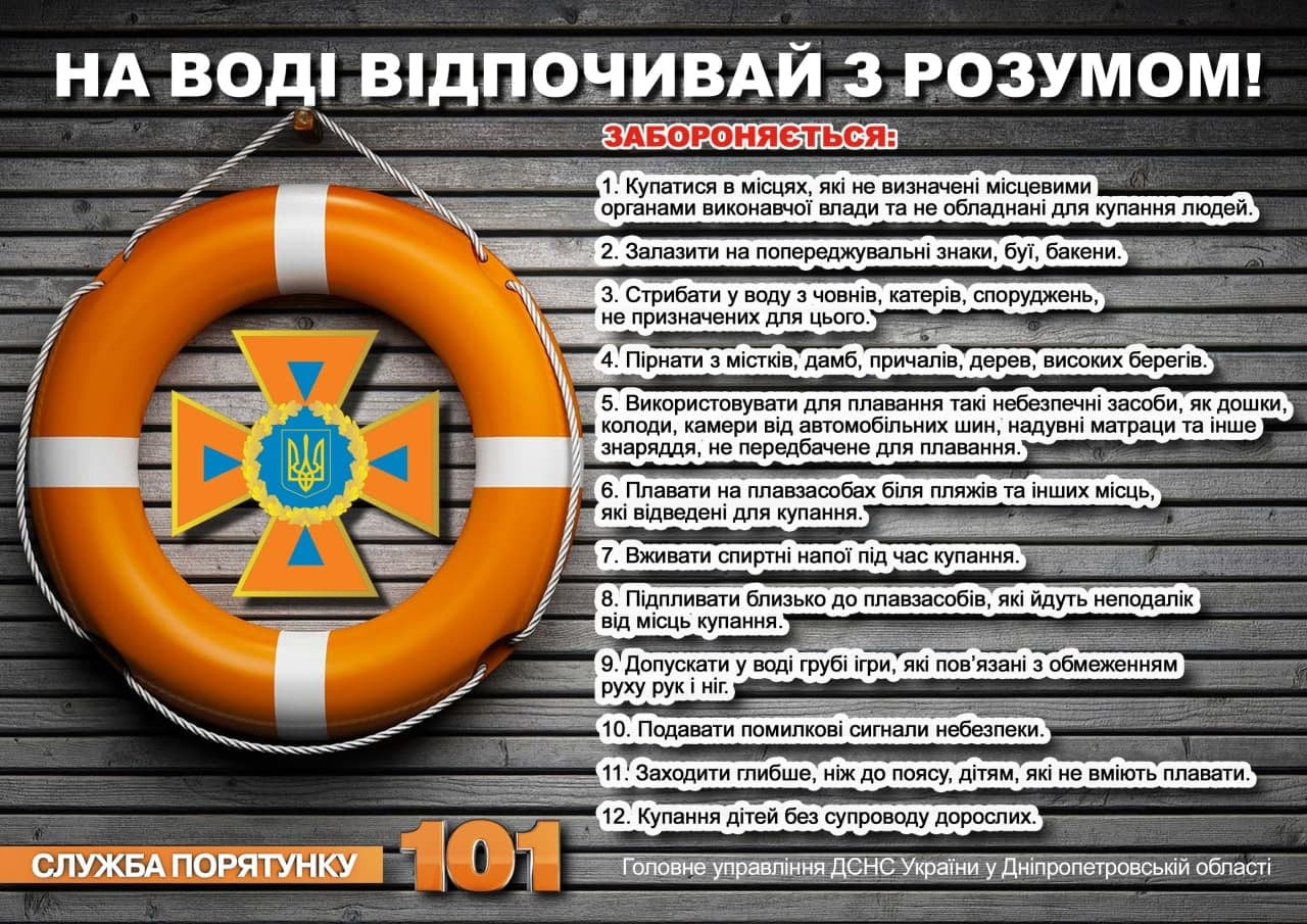 Інформуємо щодо запобігання (профілактики) виникненню надзвичайних ситуацій (небезпечних подій) на воді та дотримання Правил безпеки людей на водних об'єктах, а також недопущення відпочинку (купання) населення у невизначених для цього місцях та територіях, на яких ведуться (велися) бойові дії, включаючи території можливих бойових дій та території активних бойових дій.