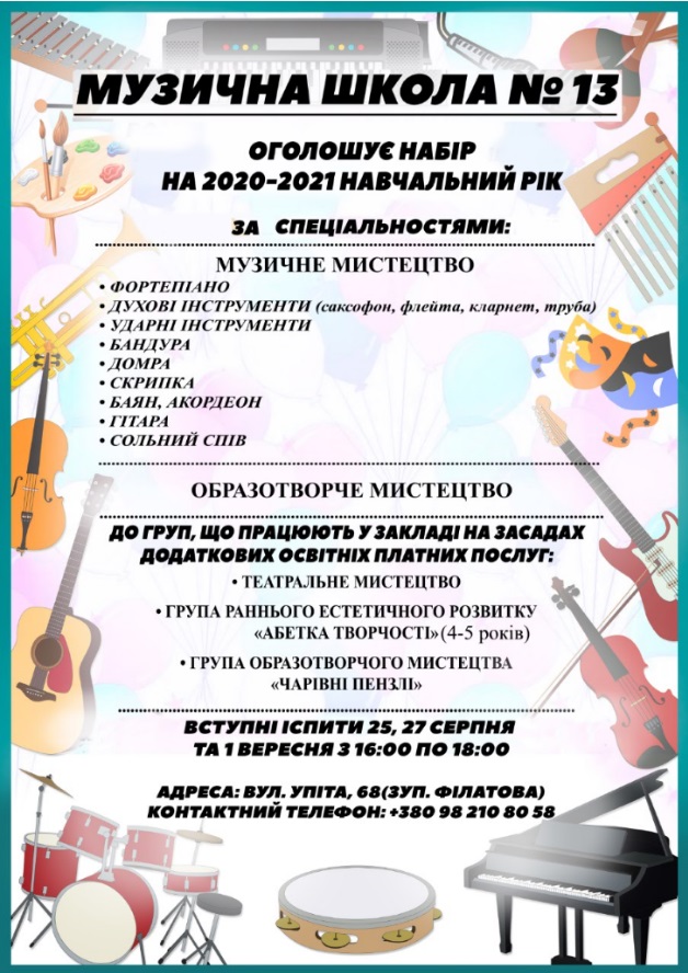Музична школа №13 оголошує набір на 2020-2021 навчальний рік