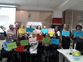 Саме в цей день в світі відзначають Міжнародний день боротьби за ліквідацію насильства щодо жінок. Дуже важливо, щоб кожен з нас усвідомив, що насилля проти жінки – це не міф, а реальна проблема, від якої навіть сьогодні, у XXI сторіччі, потерпають українські жінки. Захід відвідали учні КСШ № 70, Криворізької гімназії № 95 та курсанти Донецького юридичного інституту МВС України. Бібліотекарі надали інформацію про історю Міжнародного дня боротьби за ліквідацію насильства щодо жінок та запросили спеціалістів представницю Центру безоплатної правової допомоги Наталю Кожемяку, яка надала корисну інформацію щодо захисту своїх прав та свобод та психолога Криворізького відділу поліції Головного управління Національної поліції в Дніпропетровській області Марину Полторацьку, яка провела цікавий тренінг та бесіду з присутніми.