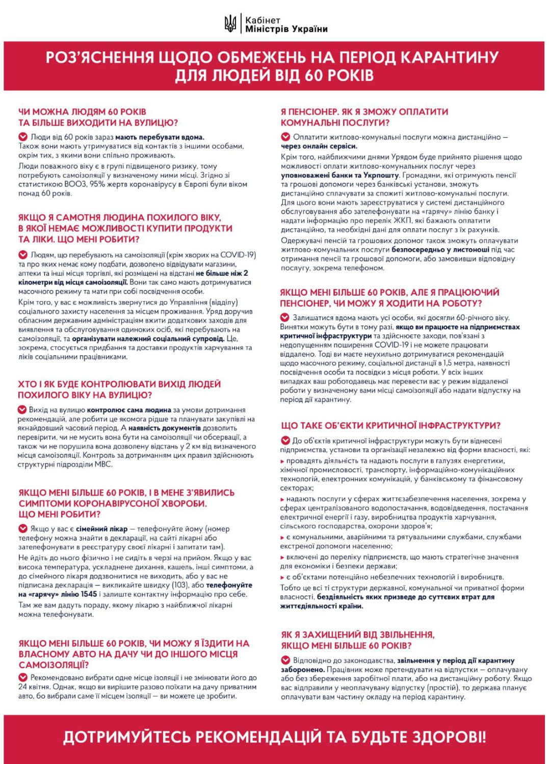 Роз’яснення щодо обмежень на період карантину для людей від 60 років (УТОЧНЕНО)