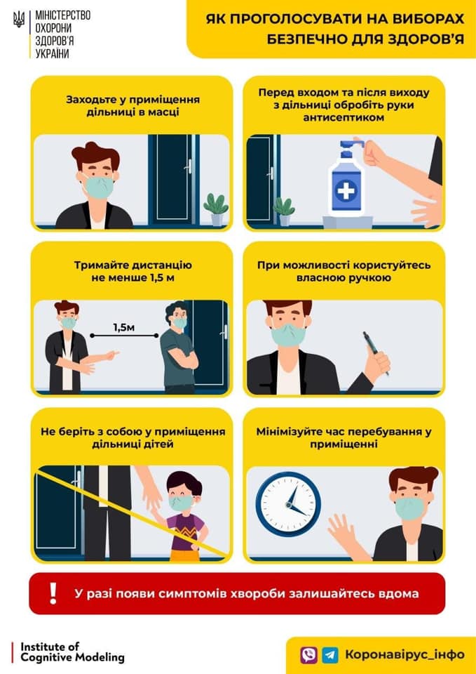 Звертаємо увагу виборців на протиепідемічні заходи під час організації та проведення виборів на період дії карантину у зв'язку з поширенням на території України COVID-19