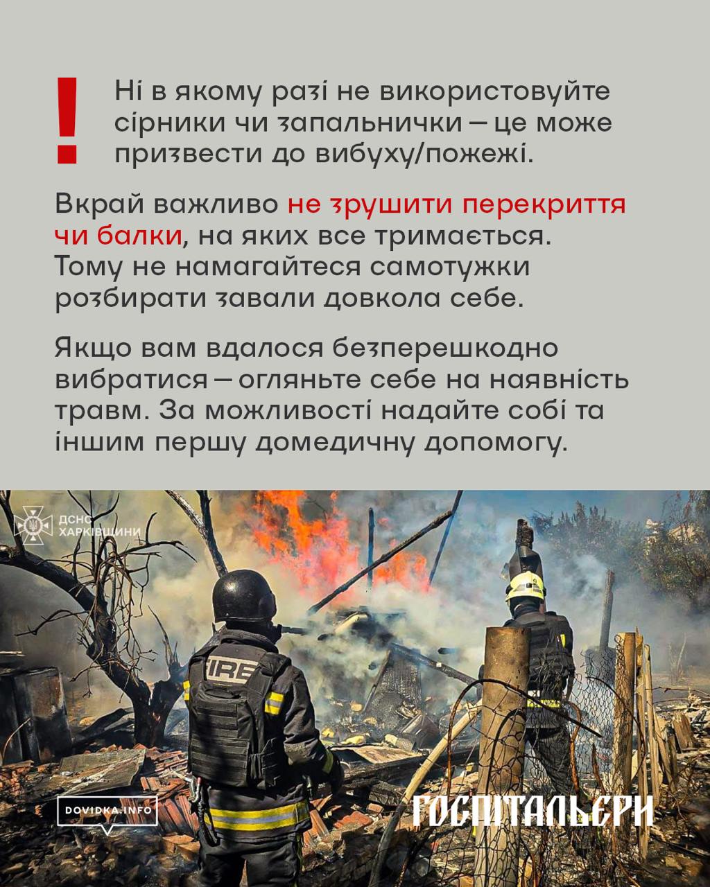 Росія все частіше посилює обстріли українських міст і сіл. Ворог усе частіше прицільно б’є по житлових кварталах, медичних закладах, укриттях та об’єктах критичної інфраструктури. Під руїнами будинків опиняються цілі родини. Саме тому кожен українець має знати базові правила поведінки у випадку потрапляння під завали.