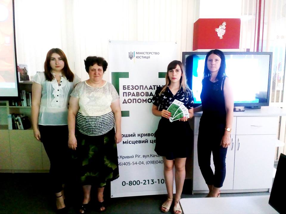 20 липня в інформаційно-правовому центрі відбувся круглий стіл «Посилення відповідальності неплатників аліментів» за участю Центру надання безоплатної вторинної правової допомоги та органів виконавчої служби міста Кривого Рогу. Під час заходу громадяни міста, у яких виникли складнощі зі сплатою аліментів, мали можливсть задати свої запитання юристам та отримати вичепрну інформацію з правових питань.