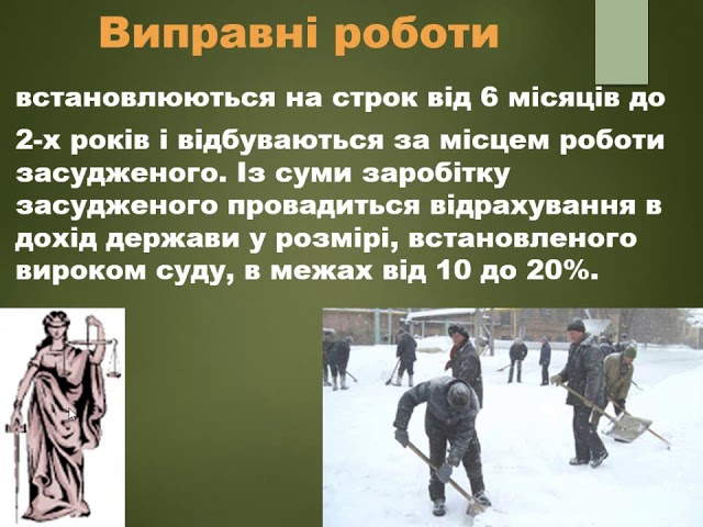 Покарання у виді виправних робіт встановлюється на строк від шести місяців до двох років. Із суми заробітку засудженого до виправних робіт робиться відрахування в дохід держави у розмірі, встановленому вироком суду, в межах від десяти до двадцяти відсотків.