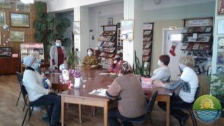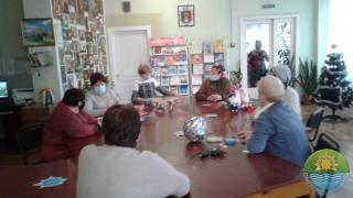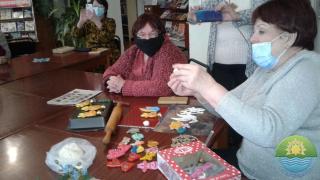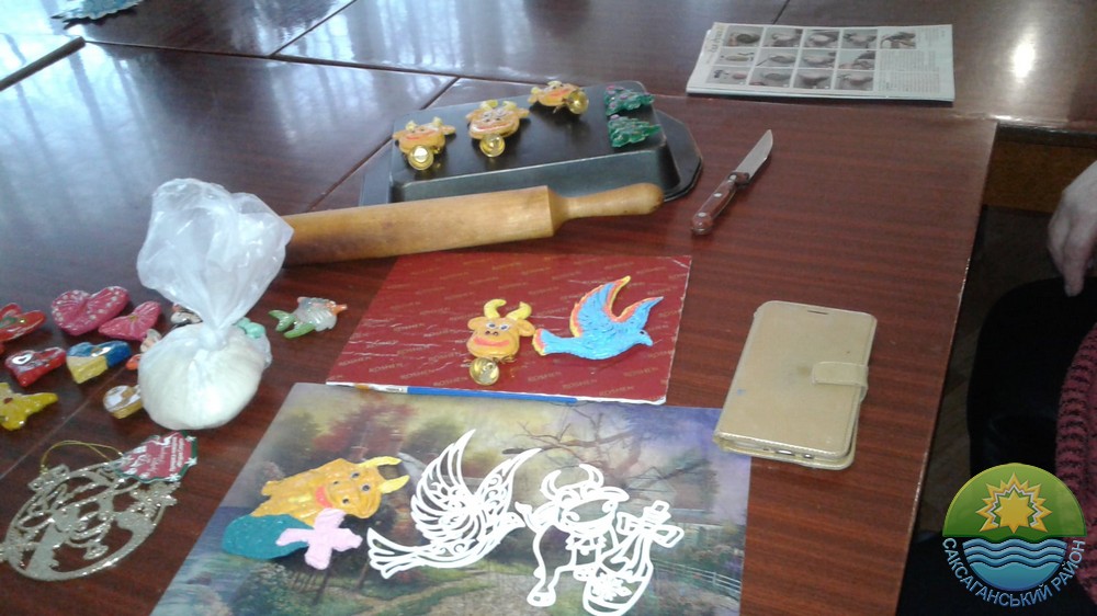 Майстрині Ніна Задорожня та Світлана Терлецька провели майстер-клас з виготовлення новорічного символу — кумедного бичка; Тамара Панасейко поділилася секретами виготовлення блискучого шару-прикраси з дисків; Надія Щерба розповіла, як виготовити ляльок-гномиків. Потім всі із задоволенням вирізали сніжинки для прикрашання бібліотеки.