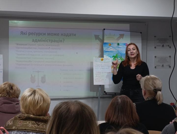 У межах практикуму управлінської діяльності «Мотивація педагогів: що працює у сучасному закладі освіти» Лізогуб О.С., заступник директора КГ № 70 КМР, та Москаленко Т.І., заступник директора БНРЦ «Довіра» КМР, поділилися досвідом упровадження ефективних інструментів мотивації педагогічних працівників. Учасники обговорили сучасні підходи до формування позитивного професійного середовища, розвитку командної взаємодії, підтримки ініціативності та впровадження інновацій. Особливу увагу було приділено участі педагогів закладів освіти району у освітньому русі EdCamp Ukraine.
