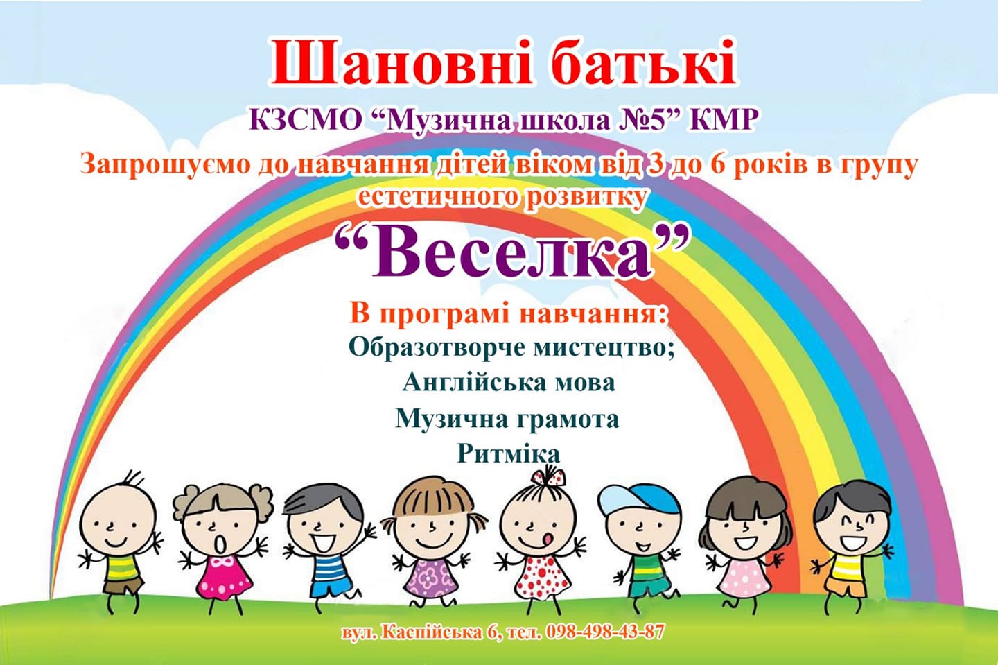 Комунальний заклад спеціалізованої мистецької освіти «Музична школа №5» Криворізької міської ради запрошує до навчання дітей віком від 3 до 6 років до групи естетичного розвитку «Веселка».