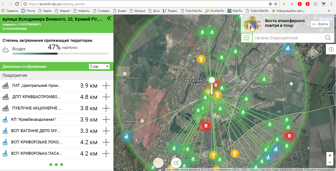 Наскільки забруднене довкілля в конкретному місці в Саксаганському районі та які підприємства найбільше впливають на стан екологічної ситуації в цій точці. Все це можна дізнатися на сайті ecoinfo.dp.ua.