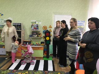 Директор закладу Чумаченко Н.І. розкрила питання налагоджування та розвитку зав’язків між педагогічними колективами закладів дошкільної освіти району. Ознайомила присутніх з банком матеріалів з питань цивільного захисту та безпеки життєдіяльності. Поділилася напрацьованим у закладі досвідом з цих питань. Велику цікавість у присутніх викликали екскурсії до Кімнати безпеки та Сенсорної кімнати – центру психологічного розвантаження.