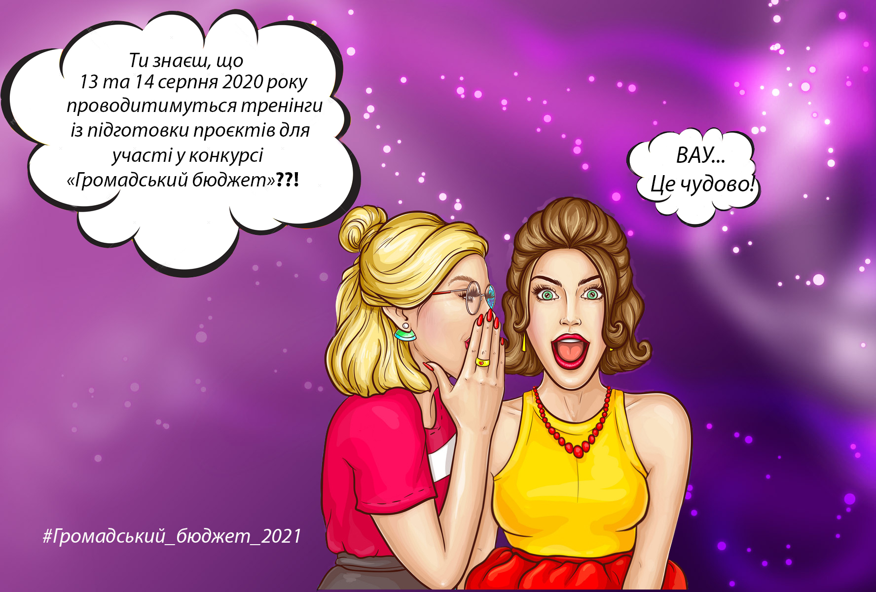 13 та 14 серпня 2020 року у приміщенні комунального закладу «Палац культури «Центральний» Криворізької міської ради (вул. Мусоргського, 19) відбудуться два восьмигодинні тренінги з розробки та подання проєктів на участь у конкурсі «Громадський бюджет-2021». Початок заходів о 9:30 год.
