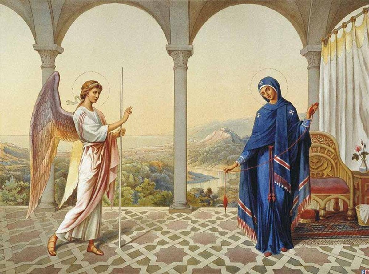 У день Благовіщення Марії явився архангел Гавриїл, привітавши її словами: «Радуйся, Благодатна, Господь з Тобою!». Ангел приніс Діві Марії благу звістку – що їй судилося народити Сина Божого.