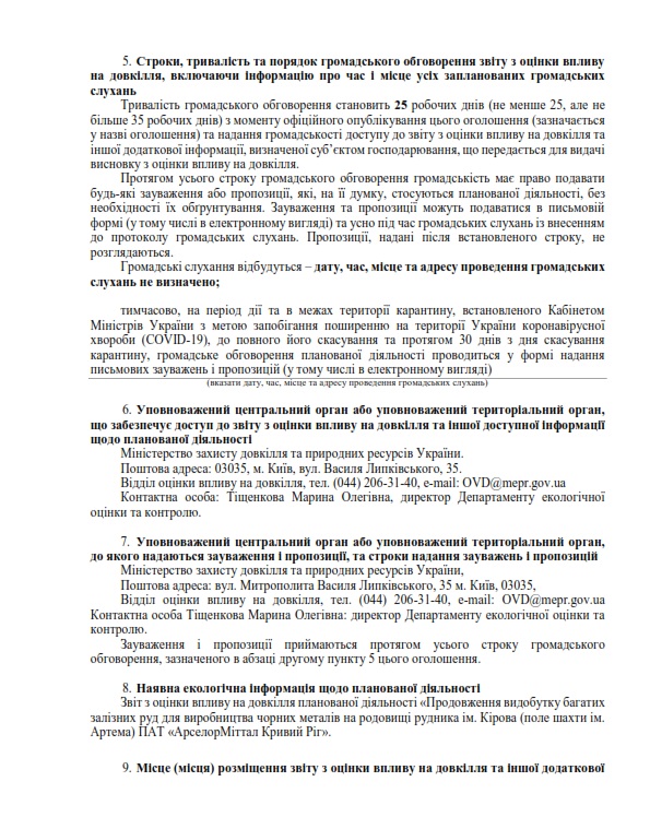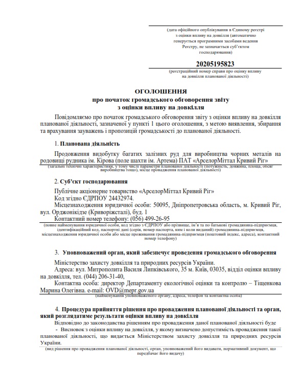 ОГОЛОШЕННЯ про початок громадського обговорення звіту з оцінки впливу на довкілля