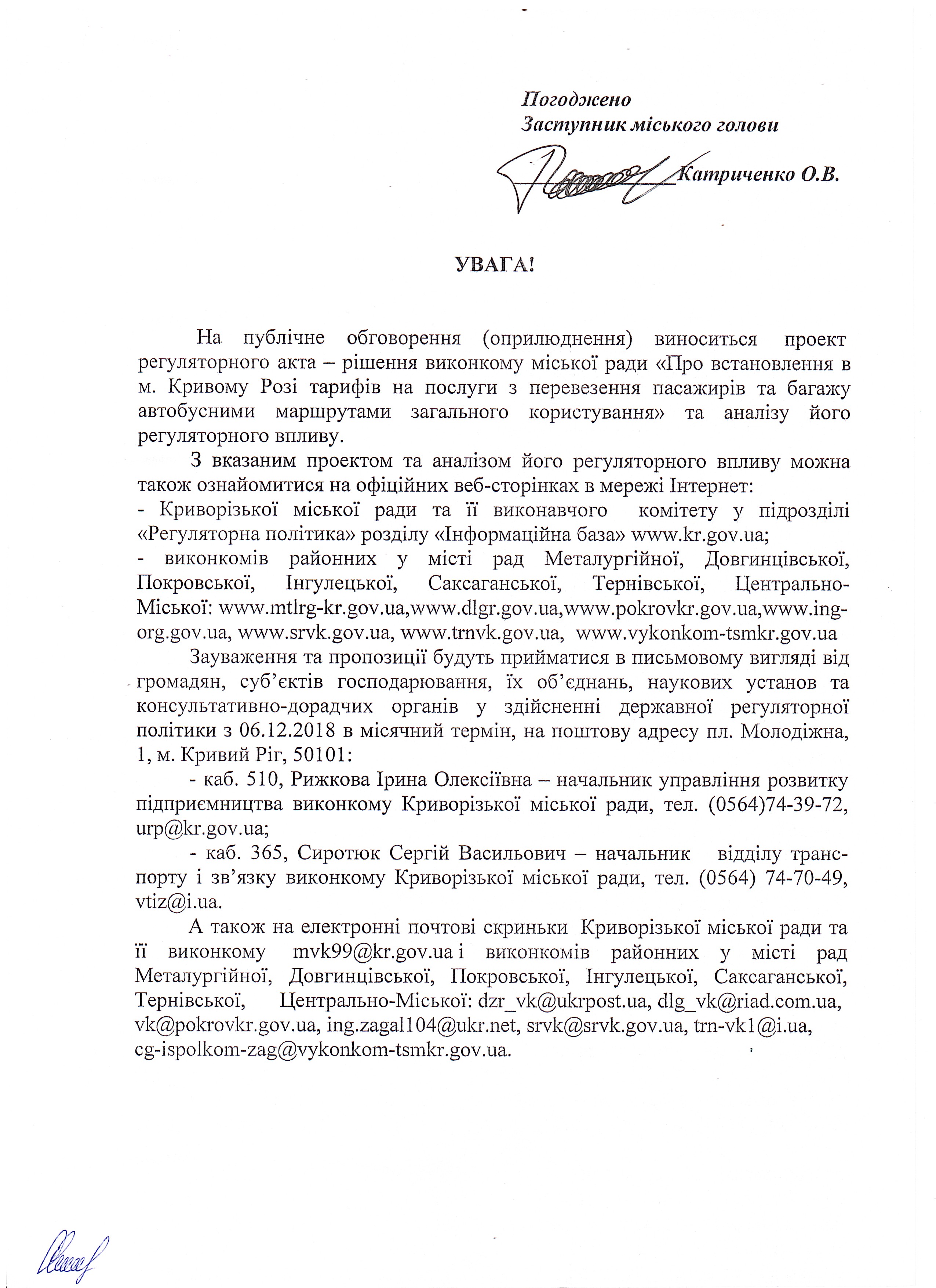 АНАЛІЗ регуляторного впливу до проекту регуляторного акта – рішення виконкому міської ради «Про встановлення в м. Кривому Розі тарифів на послуги з перевезення пасажирів та багажу автобусними маршрутами загального користування»