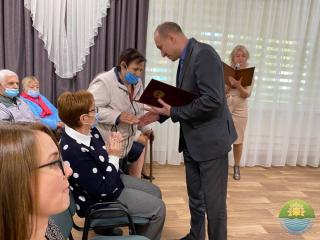 Ветеранам вручено відзнаки міського та районного рівнів, солодкі подарунки та квіти з побажаннями міцного здоров’я, любові і турботи близьких та завжди залишатися такими ж позитивними, повними сил, оптимізму та життєвої енергії. Для гостей та ветеранів виступили музичні і танцювальні колективи району.