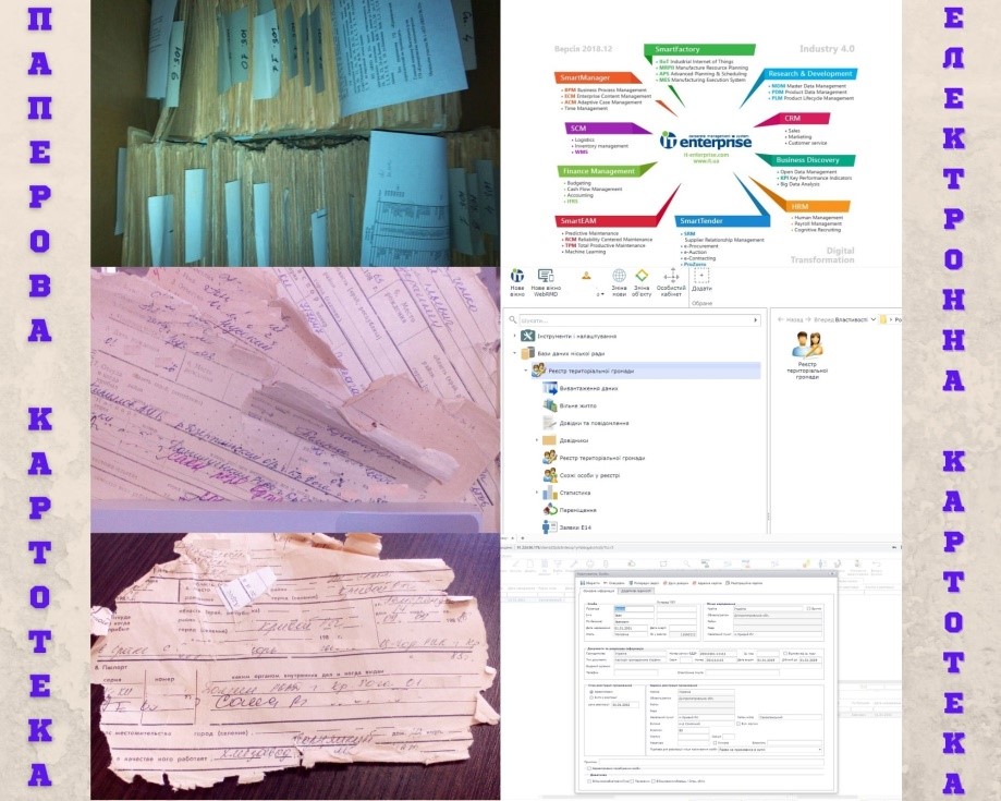 До початку ведення реєстру територіальної громади в електронній формі, картотека з питань реєстрації фізичних осіб, що була отримана від Державної міграційної служби, КП «ЖЕО №35» та інших організацій, підтримувалась у актуальному стані за карткою реєстрації особи та адресною карткою особи в паперовій формі.