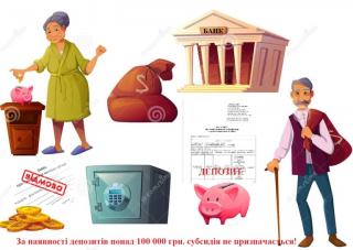 Нагадуємо, що відповідно до змін, які діють з 1 травня 2021 року, житлова субсидія не призначається як за новим зверненням, так і автоматично у разі, якщо будь-хто із складу домогосподарства або член сім’ї особи із складу домогосподарства на 1 число місяця, з якого призначається житлова субсидія, має на депозитному банківському рахунку (рахунках) кошти у сумі, що перевищує 100 тис. гривень, про що зазначається в декларації