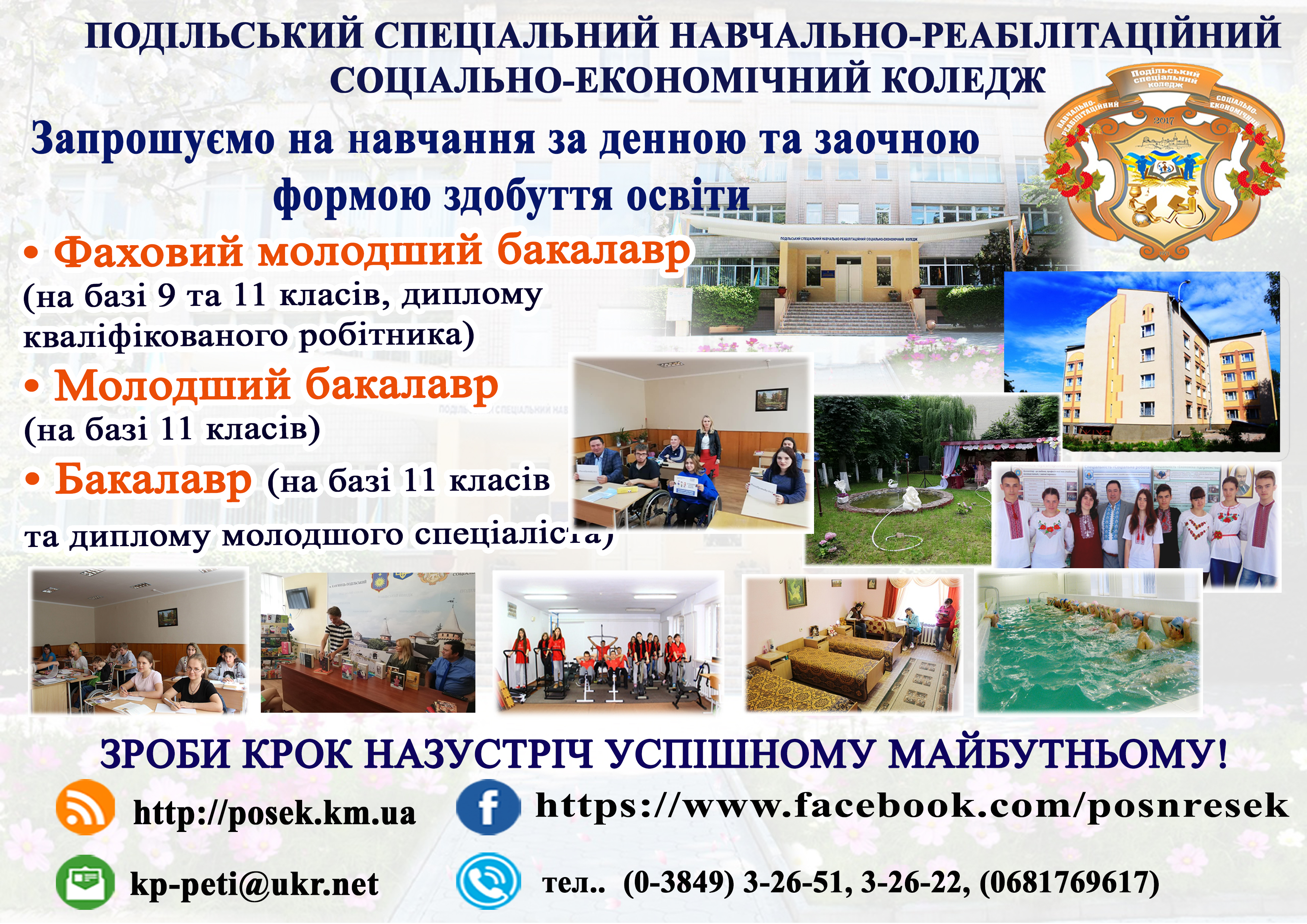 Подільський спеціальний навчально-реабілітаційний соціально-економічний коледж проводить набір на навчання осіб пільгових категорій: