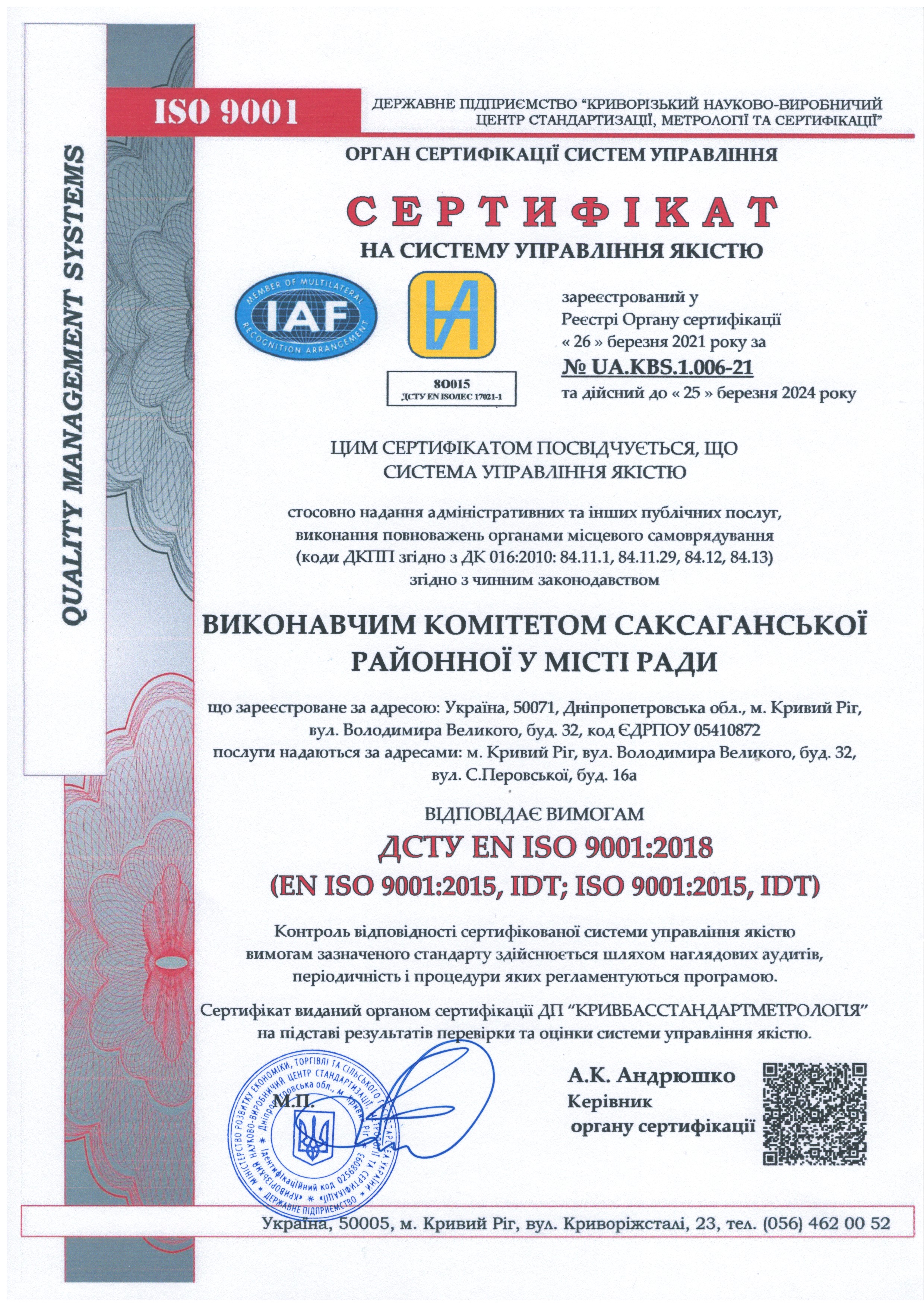Постійне поліпшення системи управління якістю виконавчого комітету Саксаганської районної у місті ради.